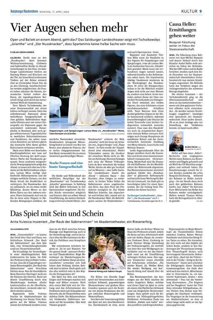 Märchenhaft, vieldeutig und mysteriös: Tschaikowskys Oper „Jolanthe“ und das Ballett „Der Nussknacker“. Für die Uraufführung 1892 als Doppelabend kreiert, werden sie heute nur noch selten gemeinsam aufgeführt. Am Salzburger Landestheater sind die beiden Werke in einem außergewöhnlichen Konzept als zusammengeführte Einheit zu erleben.